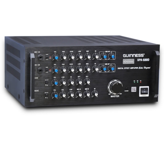 Amply Karaoke Guinness SPA-680D hoạt động với công suất 600W mạnh mẽ, đem đến khả năng thể hiện âm thanh sống động, trung thực. Với Amply Guinness SPA-680D có thiết kế cứng cáp cùng hệ thống tỏa nhiệt thông minh mang lại độ bền cao và được trang bị nhiều cổng kết nối, giúp bạn dễ dàng tương tác với các thiết bị khác.