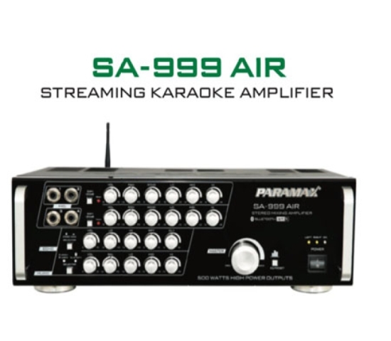 SA-999 AIR là mẫu ampli đầu bảng của PARAMAX với thế mạnh về công nghệ không dây, giúp người sở hữu tận hưởng thú vui ca hát, nghe nhạc qua kết nối Bluetooth chuẩn không nén aptX. Chất lượng trình diễn âm nhạc vượt trội của ampli SA-999 AIR đến từ mạch AIR Module, được phát triển công phu với bộ giải mã SNR 93 Decibel, sử dụng dòng chíp CSR danh tiếng từ Qualcomm (Mỹ). Thiết kế mạch PARAMAX AIR Module cùng khả năng khôi phục gần như nguyên trạng tín hiệu âm thanh từ bản thu, đã thể hiện sự trân trọng đối với âm nhạc và người thưởng thức.