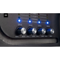 Mặt trước là hệ thống các nút điều chỉnh các kênh riêng biệt. Hệ thống đèn LED cho người dùng nắm được tình trạng hoạt động của mỗi kênh. Nút công tắc nguồn cũng được trang bị ở mặt trước thuận tiện và sử dụng dễ dàng.