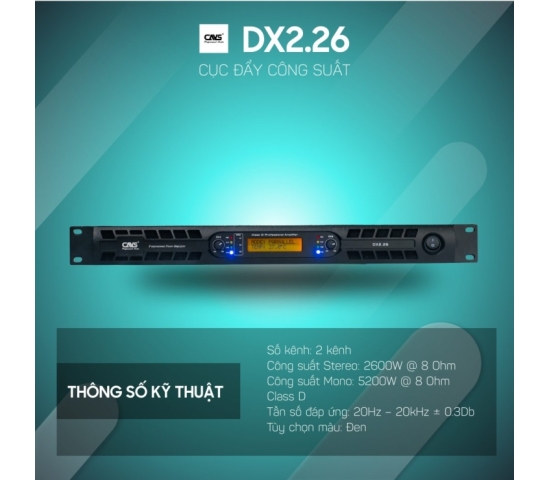 Đẩy công suất CAVS DX2.26 được trang bị nhiều tính năng và ưu điểm vượt trội về thiết kế chắc chắn cùng hiệu suất âm thanh chân thực mạnh mẽ. Nổi bật trong các dòng sản phẩm, cục đẩy công suất DX2.26 với công suất mạnh mẽ đến 2600W/8ohm , mạch class D với nguồn xung cân nặng chỉ 8kg gọn nhẹ, dễ dàng lắp đặt và vận chuyển là lựa chọn phù hợp cho các phòng hát, phòng karaoke gia đình, kinh doanh… đáp ứng mọi nhu cầu giải trí của bạn.