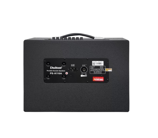Loa Dalton PS-K110A có cấp nguồn AC 12V có khả năng lấy nguồn từ xe hơi, đảm bảo thời gian sử dụng được dài hơn. Loa PS-K110A được trang bị nguồn bình ắc quy 12V/7.2AH, thời gian phát của loa được 3 đến 4 tiếng và được xạc đầy pin bằng nguồn điện AC 220V trong thời gian 4 tiếng. Khi ở nhà có thể sử dụng loa bằng nguồn điện trực tiếp, hoặc có thể vừa sạc vừa sử dụng mà không lo hết bình.
