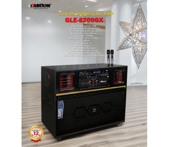 Loa kéo điện OMATON GLE-8200GX là một sản phẩm tâm huyết của thương hiệu OMATON, hướng đến phân khúc người dùng yêu cầu khắt khe về chất lượng âm thanh và sự tiện lợi trong sử dụng. Sản phẩm này không chỉ kế thừa những ưu điểm vượt trội của các dòng loa kéo trước đó mà còn được tích hợp nhiều công nghệ mới nhất, mang đến trải nghiệm âm nhạc và karaoke đỉnh cao. Thiết kế mạnh mẽ, sang trọng cùng cấu hình âm thanh ấn tượng là những yếu tố khiến OMATON GLE-8200GX nhanh chóng chiếm được cảm tình của người tiêu dùng.