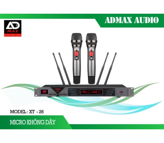Micro Không Dây ADMAX XT-26 là Dòng micro karaoke dành cho gia đình rất chuyên nghiệp,micro dùng sóng UHF tự động,tích hợp tự ngắt và gia tốc rơi ..