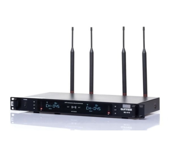 Micro GUINNESS MU-919 được trang bị 4 ăng ten để việc thu phát sóng tín hiệu ổn định hơn, đặc biệt với không gian rộng thì micro vẫn nhận được tín hiệu tốt. Bạn không còn phải lo lắng micro có thể mất tín hiệu hay tín hiệu bị gián đoạn mà có thể thoải mái ca hát, di chuyển đến mọi vị trí khác nhau trong không gian phòng.