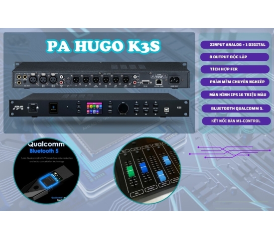 Vang số PA(HUGO) K3S là bộ xử lý tín hiệu chuyên nghiệp, cao cấp cho Karaoke, hội trường, tích hợp sẵn nhiều tính năng