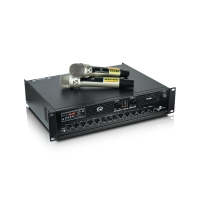 Đi kèm là 2 tay micro không dây ứng dụng sóng siêu cao UHF cho phạm vi hoạt động trong khoảng 30m. Trang bị khả năng tự dò sóng sạch cùng chức năng lựa chọn sóng xa hoặc sóng gần giúp ngăn chặn nhiễu, trùng sóng xảy ra.