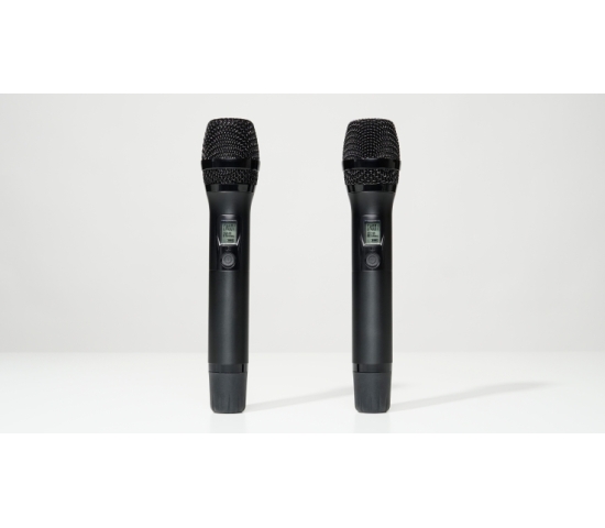 Bộ sản phẩm còn có 2 tay micro không dây dBacoustic nhỏ gọn, làm bằng hợp kim phủ nano chống trầy xước, chống bám vân, tạo cảm giác thoải mái cho người dùng khi cầm nắm. Trên thân micro không dây này cũng được trang bị 1 màn hình LCD nhỏ hiển thị tần số, dung lượng pin và 1 nút nguồn mềm, rất dễ thao tác.