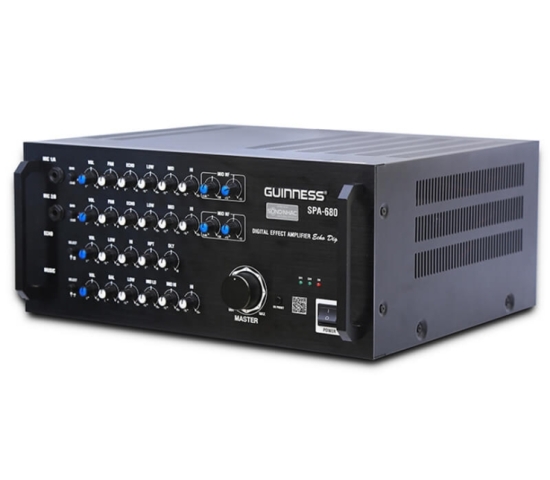 Amply Karaoke Guinness SPA-680D hoạt động với công suất 600W mạnh mẽ, đem đến khả năng thể hiện âm thanh sống động, trung thực. Với Amply Guinness SPA-680D có thiết kế cứng cáp cùng hệ thống tỏa nhiệt thông minh mang lại độ bền cao và được trang bị nhiều cổng kết nối, giúp bạn dễ dàng tương tác với các thiết bị khác.