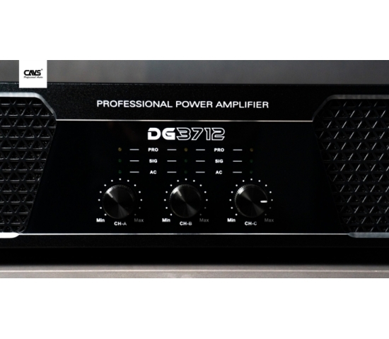 CAVS DG3712 3 kênh mạnh mẽ: DG3712 cung cấp 3 kênh với 2 kênh sử dụng cho loa full công suất 700W/kênh/8 ohm và 01 Kênh chuyên dùng cho sub(loa siêu trầm) với công suất lên đến 1200w/8 ohm, giúp khuếch đại âm thanh mạnh mẽ, lan tỏa khắp mọi ngóc ngách không gian.
