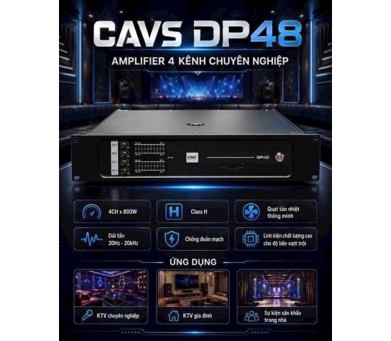 Trong các phòng karaoke kinh doanh, nơi âm thanh cần phải mạnh mẽ, rõ ràng và có khả năng xử lý tốt các thể loại nhạc đa dạng, CAVS DP48 là một giải pháp lý tưởng. Công suất 4 kênh cho phép người dùng dễ dàng phối ghép với nhiều cặp loa khác nhau, tạo nên hệ thống âm thanh vòm hoặc âm thanh stereo mạnh mẽ. Khả năng tái tạo âm thanh chi tiết giúp giọng hát của ca sĩ trở nên mượt mà và truyền cảm hơn, mang lại trải nghiệm giải trí tuyệt vời cho khách hàng.