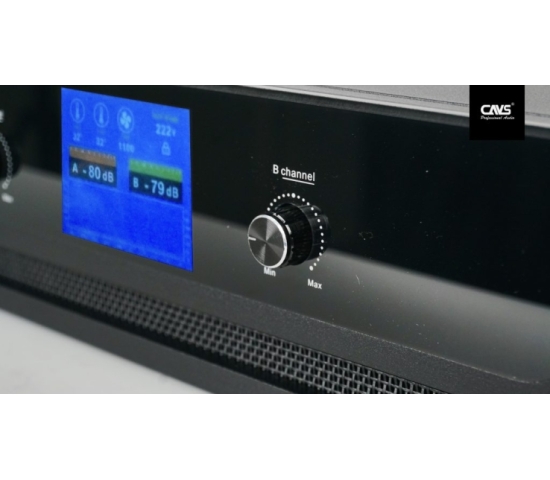Amplifier MA800 class H công suất 800W x 2 kênh. Nổi bật là bàn hình 4 inch đa sắc màu hiển thị cực kỳ sắc nét các thông số của thiết bị. Thiết kế bên ngoài của CAVS MA800 có một nét mạnh mẽ hơn rõ ràng so với phiên bản trước đó. Đặc điểm đáng chú ý nhất của CAVS MA800 là màn hình hiển thị ở chính giữa. Với màn hình nhỏ ở giữa, CAVS MA800 hiển thị đầy đủ mức âm lượng và nhiệt độ bên trong của máy là bao nhiêu, làm cho người sử dụng dễ dàng nhìn rõ và thao tác một cách chính xác và nhanh chóng hơn, trong nhiều điều kiện phải nhìn xa hay thao tác liên tục thì vẫn hạn chế được việc, bị nhìn nhầm so với các màn hình có kích thước nhỏ hơn.