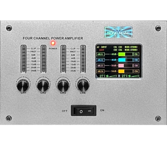 Mặt trước là hệ thống các nút điều chỉnh các kênh riêng biệt. Hệ thống màn hình hiển thị cho người dùng nắm được tình trạng hoạt động của mỗi kênh. Nút công tắc nguồn cũng được trang bị ở mặt trước thuận tiện và sử dụng dễ dàng.