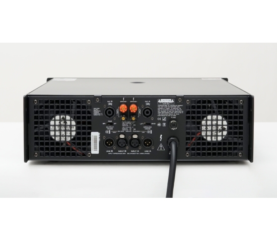 Mặt trước gồm 1 công tắc nguồn, 2 núm điều chỉnh cùng 2 dày đèn led thể hiện trạng thái hoạt động cho 2 kênh riêng biệt. Bên cạnh đó là các rãnh tản nhiệt được trải đều giúp cục đẩy có thể hoạt động liên tục mà ít bị nóng.