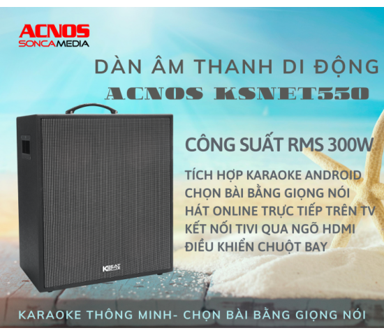 Dàn Karaoke di động KSNet550 cho phép chọn bài bằng giọng nói một cách hoàn hảo – tìm kiếm bài hát từ kho nhạc Youtube trộn chung với kho nhạc chọn lọc có sẵn hàng trăm ngàn bài hát chất lượng cao.