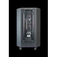Và để hỗ trợ cho việc di chuyển, loa được trang bị 4 bánh xe có khóa cài kết hợp với hai tay nắm khoét âm hai bên vừa thẩm mỹ mà rất tiện lợi cho việc khiêng nhấc.
