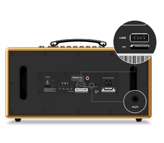Ngoài ra, bạn cũng có thể đắm chìm trong thế giới âm nhạc riêng, chỉ cần kết nối thiết bị của bạn với loa PASION 2c qua các cổng AUX, USB, thẻ nhớ TF và thưởng thức danh sách nhạc yêu thích.
