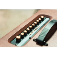 Sở hữu lớp ê căng vải lưới họa tiết caro ánh kim cuốn hút, kết hợp cùng thùng loa bọc da cao cấp với 4 tùy chọn màu sắc: Brown, Burgundy, Black và Cream Leather, sản phẩm tôn vinh phong cách riêng của mỗi người dùng.