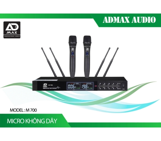 Micro Không Dây ADMAX M-700 là Dòng micro mới năm 2023 với thiết kế tay mic thon tròn cầm rất chắc chắn và khoẻ,Sóng micro rất tốt đi xa không bị nhiễu , Đèn hiển thị thông tin rất rõ và nét