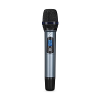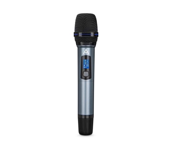 Thân micro hợp kim nhôm đen nhám sang trọng, màn hình LED hiển thị pin và tần số rõ ràng – vừa đẹp vừa chuyên nghiệp.