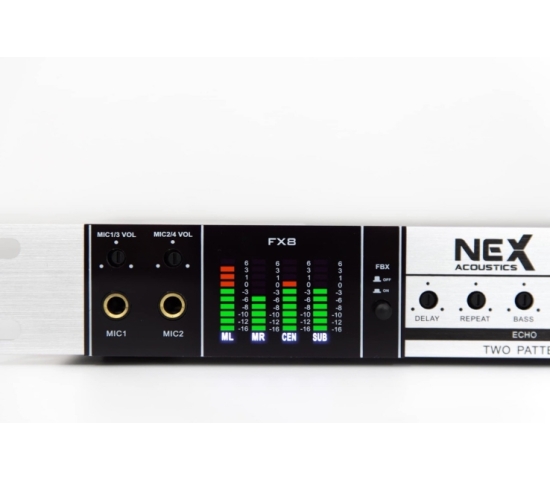 Chức năng điều chỉnh âm sắc (Bass – Midle – Treble) riêng biệt cho MIC, ECHO, MUSIC. Giúp người dùng có thể dễ dàng tùy chỉnh âm thanh theo ý mình. Ngoài ra sản phẩm NEX FX8-2021 còn sở hữu 2 bộ tạo hiệu ứng tiếng vang (Echo)cho chất âm dày và sống động hơn.