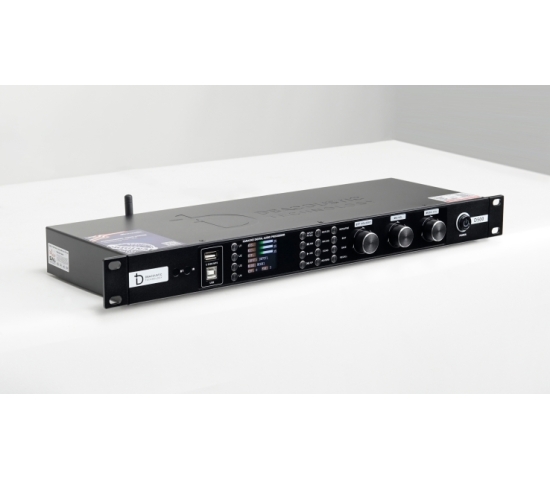 Các nút chức năng đều được nằm ở mặt trước với kí hiệu rõ ràng, dễ hiểu nên người dùng cũng có thể nắm bắt và thuận tiện trong căn chỉnh. Một điểm cộng khá lớn đó là 3 núm Master của Micro, Effect, Music được làm to và dễ điều chỉnh, đây cũng là những núm vặn mà chúng ta sử dụng thường xuyên nhất. Bên cạnh đó là 1 màn hình LCD hiển thị tình trạng hoạt động của vang số, 3 cổng micro 6 ly và 1 cổng USB kết nối với máy tính để cài đặt phần mềm.